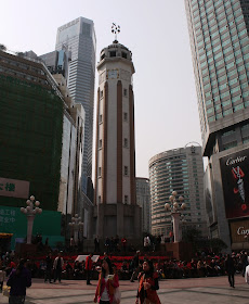 The People's Liberation Monument in downtown Chongqing. This was erected to honor victory in World War II. |